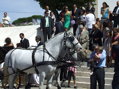 Hoje, neste dia tão feliz para todos nós, não poderíamos deixar de ter connosco estes grandes amigos, nobres animais que nos fascinam, e que têm tido um papel muito importante nas nossas vidas! Depois de estarem presentes em tantos casamentos de desconhecidos, também hoje é para eles um dia diferente e estão de certeza muito felizes! O que faremos com eles de seguida não pretende ser uma apresentação equestre mas apenas um momento repleto de simbolismo…